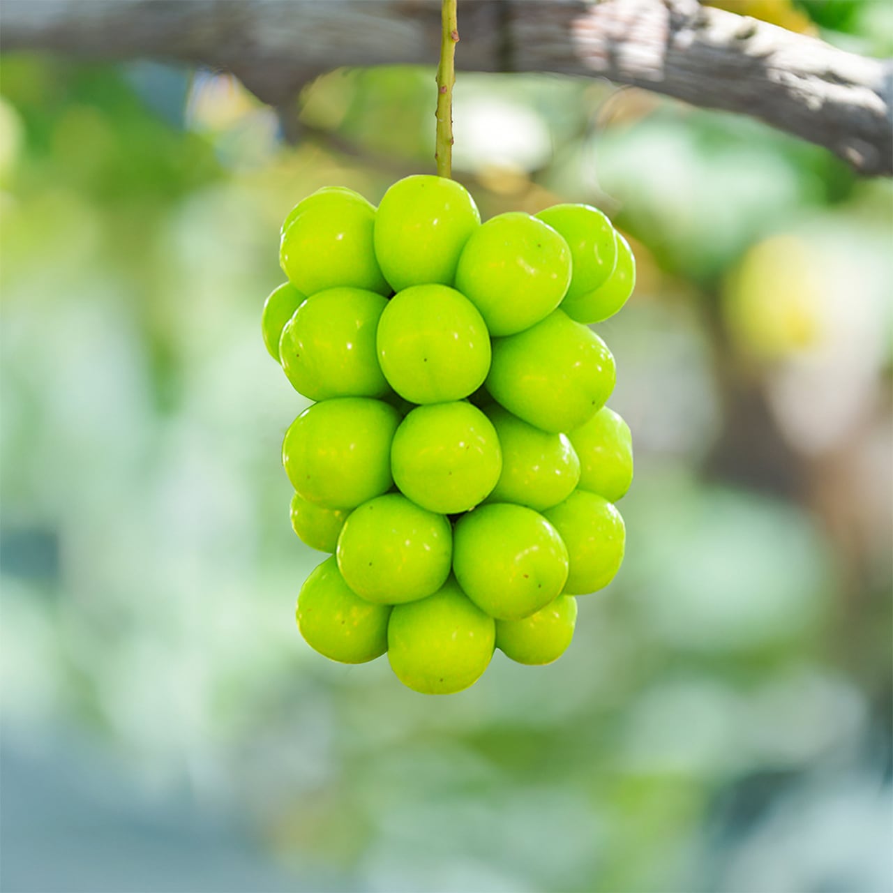 透き通るような緑の輝きが美しい、定番にして王道のシャインマスカット。